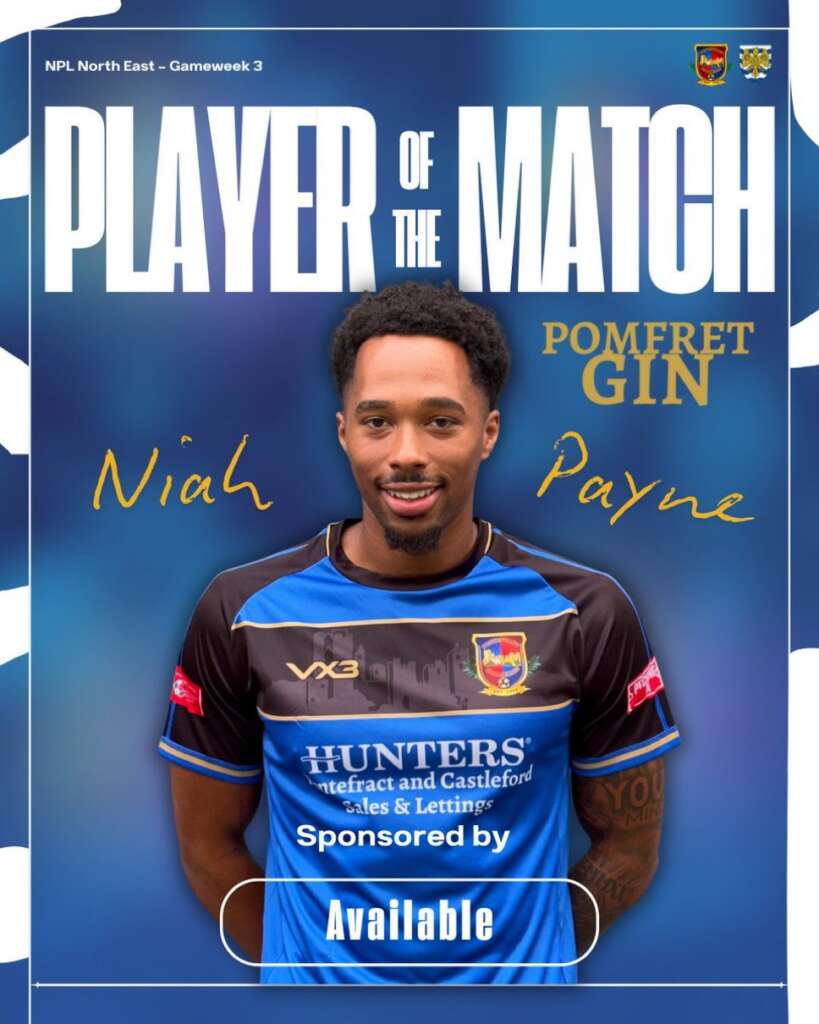 Niah Payne, who impressed both out wide and centrally with his work rate and quality on the ball, was named (Pomfret Gin) Player of the Match — continuing his bright start in Pontefract colours.